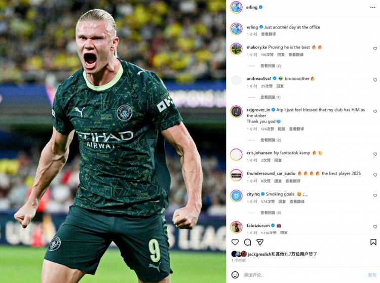 2025-10-22 08:02:09连续12场破门,哈兰德社媒晒照:不过又是普普通通上班的一天